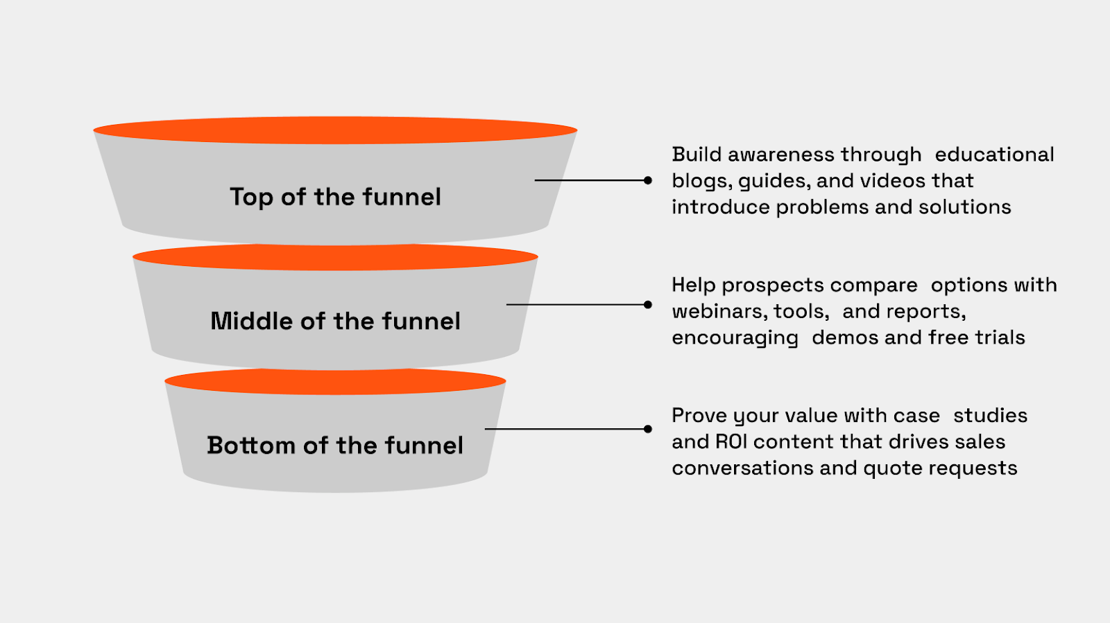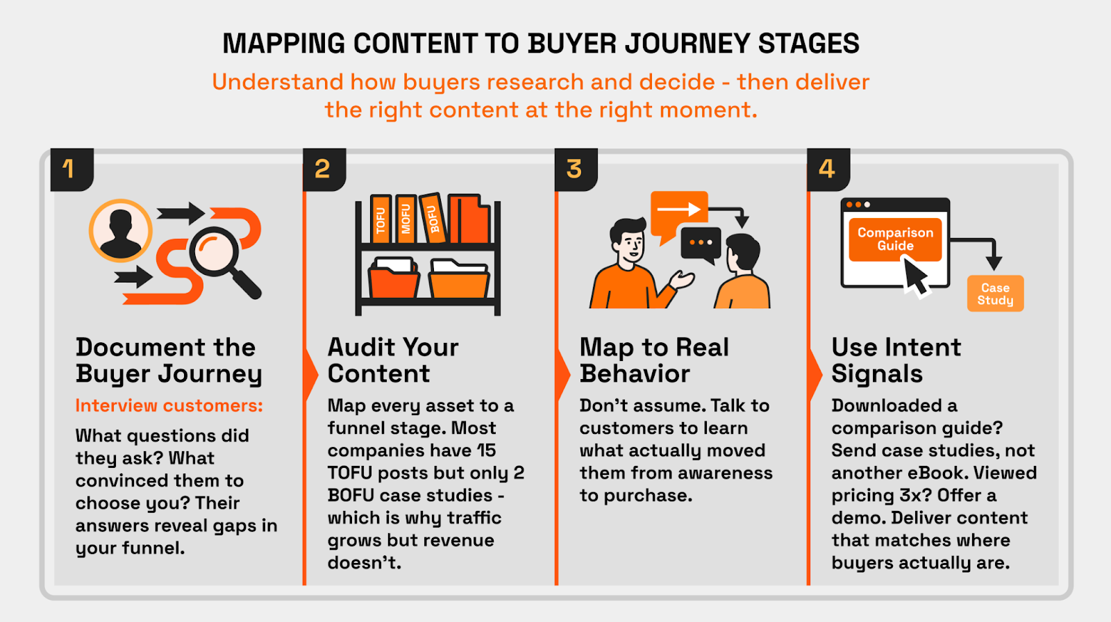 If a procurement manager is ready to sign a contract, they won't care about your “Intro to Industry" blog posts. On the flip side, someone just starting their research isn't going to sit through a 40-page technical implementation guide. You have to match what you're writing to what the buyer is actually doing at that moment.