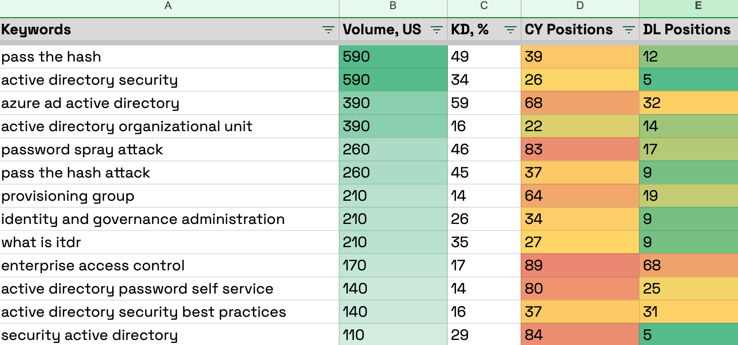 This approach dramatically reduces keyword research time. Instead of brainstorming hundreds of phrases, you start with a proven list: the keywords competitors rank for in the top ten, the terms driving their traffic, and the topics they prioritize. From there, you simply evaluate which keywords align with your goals and where you have a real opportunity to outrank them.